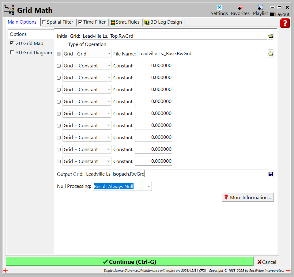 - Input グリッドには、Leadville Ls_Isopach.RwGrd を選択します。