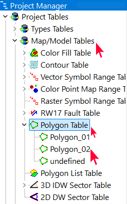- プログラムウィンドウの左側にある Project Manager に、Project Tables リストが表示されます。Project Tables グループの左側にある三角形のシンボルをクリックすると、これらのテーブルの表示が展開されます。