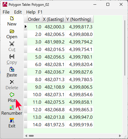 - このポリゴンを表示するには、このウィンドウの左側にある Plot ボタンをクリックします。