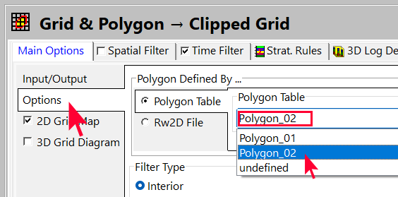- Grid | Filters | Polygon Clip を選択します。