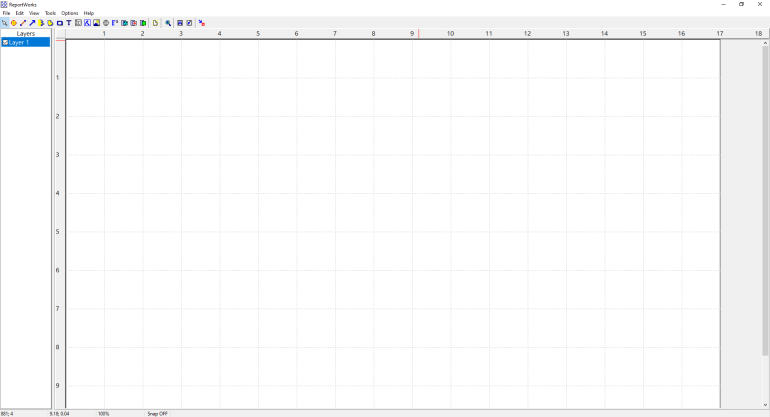 をクリックします。ReportWorks プログラムが起動し、新しい空白のウィンドウが表示されます。