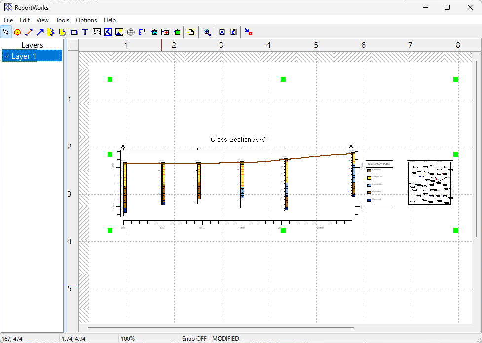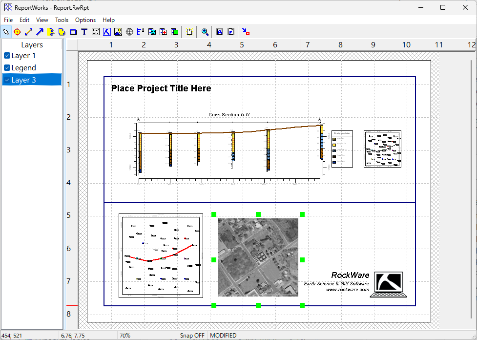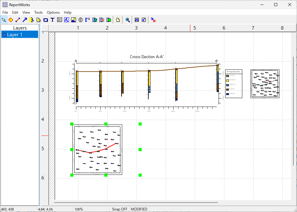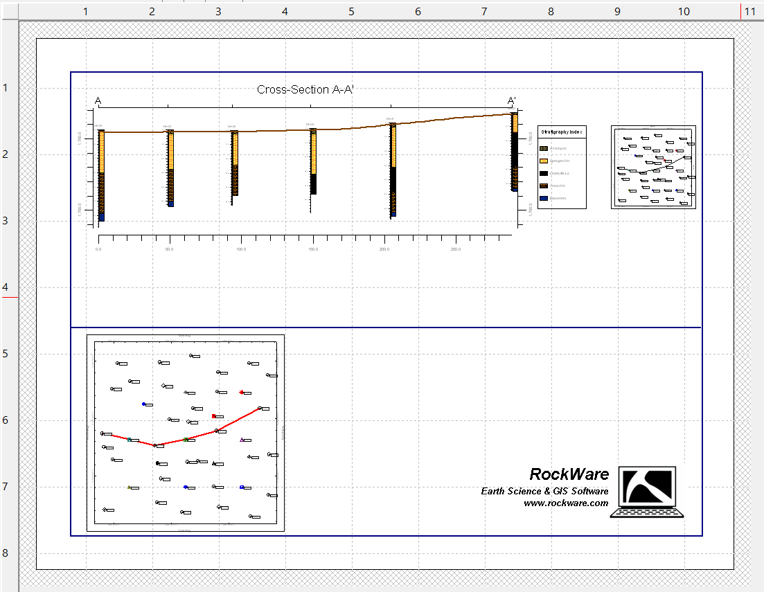 この演習では、さまざまな種類の RockPlot2D 画像、その他のグラフィック画像、テキスト、スケールバーなどを含む印刷可能なページを作成する方法を説明します。