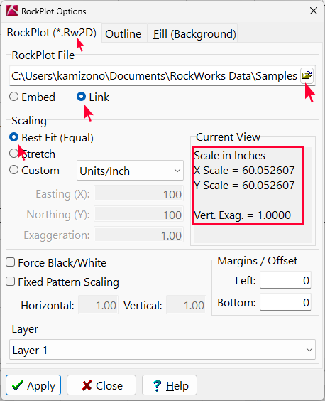 - RockPlot2D File: 上部のプロンプトにある小さなファイルを開く