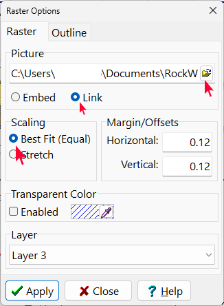 ウィンドウが表示され、ここに、ラスター イメージ ファイル名を選択してスケーリングを設定します。