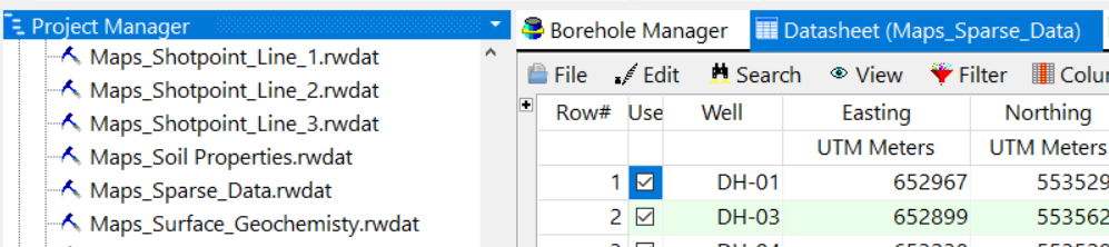 Maps_Sparse_Data.rwDat ファイルをダブルクリックして、このデータを Datasheet タブに開きます。