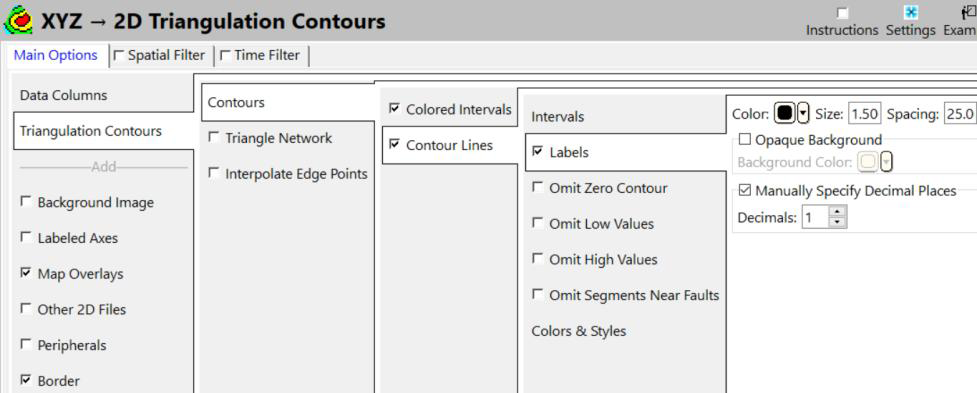 - Utilities セクションにあるアイコンから、Maps | Triangulation Contours オプションを選択します。