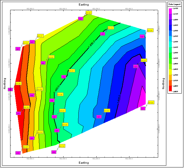 それでは、Triangulation Contours メニューアイテムを使用して、井戸の位置と地下水位情報、および、地下水位の等高線をあらわすマップを作成しましょう。