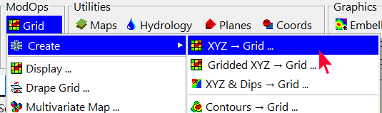 - メインウィンドウの ModOps セクションで、Grid | Create | XYZ → Grid コマンドを選択します。