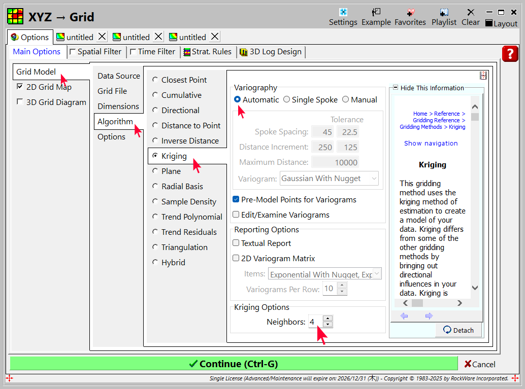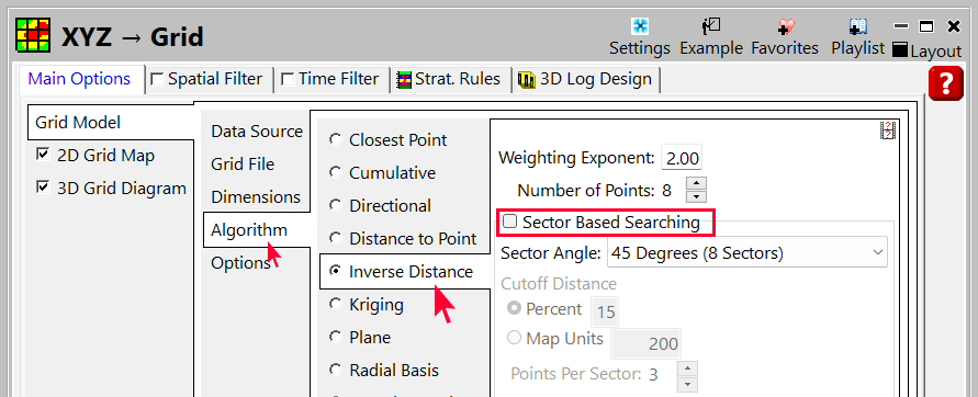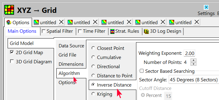 - Grid Model | Algorithm をクリックして、グリッド手法を Inverse Distance に戻します。