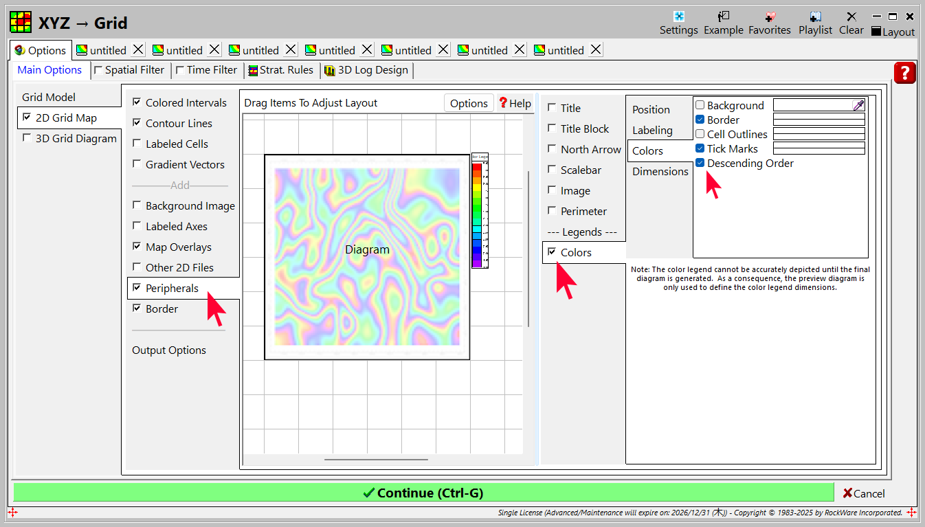 - 凡例を入れる場合は、Peripherals にチェックを入れて、Color にチェックを入れます。