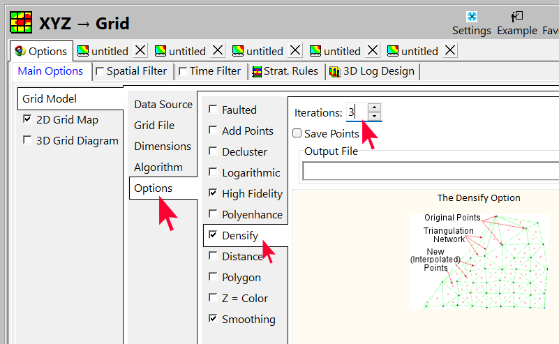 次のステップでは、「Densify」および「Polyenhance」オプションを選び、等高線の形状にどのような影響があるかを確認します。