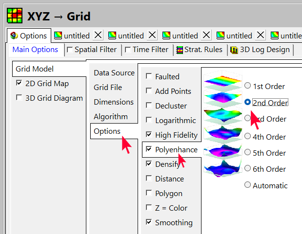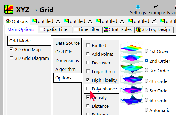 - このタイプのデータには、Polyenhance オプションを使用し「ない」ことをお勧めします。Grid Model | Options で Polyenhance をオフにしてください。