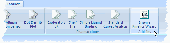 Enzyme Kinetics Module (酵素反応速度分析モジュール) は、Toolbox タブの Add Ins から使用することができます。