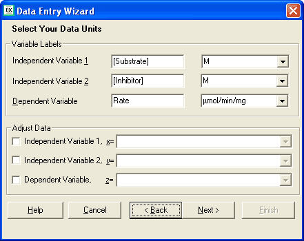 Enzyme Kinetics data (酵素反応速度データ) を分析するには、まず Data Entry Wizard を使用してデータを入力します。