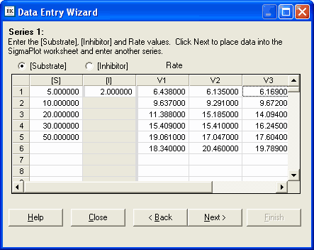 Enzyme Kinetics data (酵素反応速度データ) を分析するには、まず Data Entry Wizard を使用してデータを入力します。