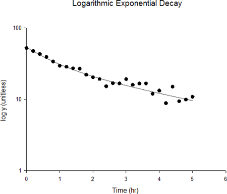 log(y) vs t グラフは、時間と応答の関係をプロットします。