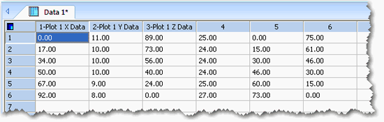 XY, YZ または XZ ペアを使用して、プロットする曲線が単一または複数のグラフを作成している場合は、すべての X,Y, または Z データを同じ列に入力し、対応する X,Y または Z ペアの値を別の列に入力してください。すべてのデータペアで、パーセンテージまたは単一の目盛りが使用されている場合、3番目の列のデータが計算され、結果としてグラフ表示されます。