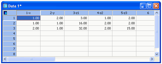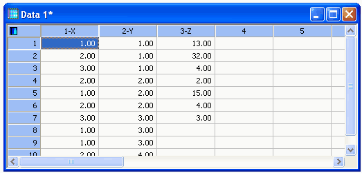 | ※ Note: Z を複数列でプロットする場合は、いずれの Z 列もワークシート上で隣り合っている必要があります。X と Y 列はワークシート上のどこにでも配置できます。 |