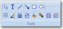 - Tools (ツール): Select Object (オブジェクトの選択), Text (テキスト), Draw Line (ラインの描画), Draw Arrow (矢印の描画), Draw Box (ボックスの描画), Draw Ellipse (楕円の描画), Line Type (ラインタイプ), Line Color (ラインカラー), Line Thickness (ラインの太さ), Fill Color (塗りつぶし色), Symbol Type (シンボルタイプ), Fill Pattern (塗りつぶしパターン), Axis Scale (軸スケール).