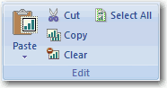 - Edit (編集): Paste (貼り付け), Cut (切り取り), Copy (コピー), Clear (削除), Select All (すべて選択)