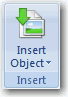 - Insert (挿入): Graphic File (画像ファイル), Word Text (ワード文書), Excel Table (エクセルの表), Equation (数式), New Object (新規オブジェクト) を挿入します。