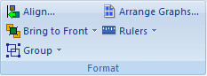 - Format (書式設定):Arrange Graphs (グラフの配置), Bring to Front (最前面に移動), Group (グループ化), Align (整列), Send to Back (最背面に移動), Ungroup (グループ解除)