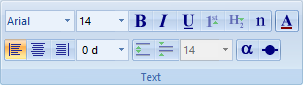 - Text (テキスト):Font (フォント), Font Size (フォントサイズ), Bold (ボールド), Italic (イタリック), Underline (アンダーライン), Superscript (上付き), Subscript (下付き), Normal (標準スタイル), Color (カラー), Align Left (左揃え), Align Center (中央揃え), Align Right (右揃え), Rotation (回転), Increase Space (行間を開ける), Decrease Space (行間を詰める), Line Spacing (行間指定), Greek Characters (ギリシア文字), Legend Symbol (凡例シンボル)