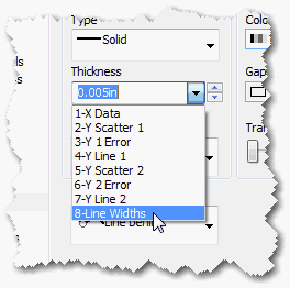 グラフ上のラインの幅は、ワークシートの空の列を使って制御することができます。