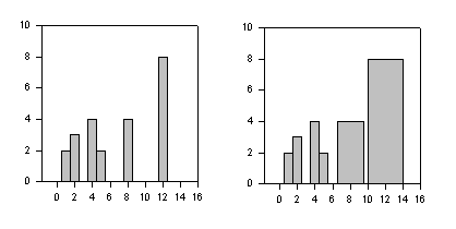 棒の幅を Uniform に設定すると、棒の最小幅を使用して、すべての棒を同じ幅にすることができます。棒をプロットする位置を決める値の増分が不均一な場合も、棒の幅は一定のままです。