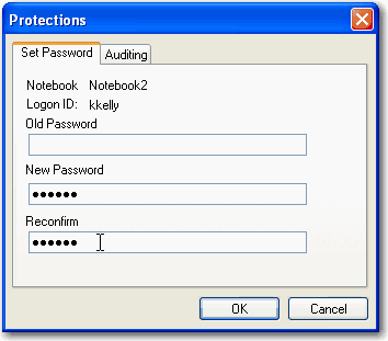 - Protections ダイアログボックスの Set Password タブを指定し、New Password ボックスにパスワードを入力します。