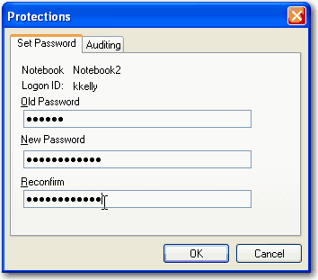 - Protections ダイアログボックスの Set Password タブを指定し、Old Password ボックスに前のパスワードを入力します。