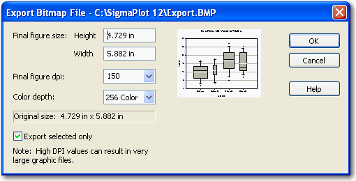 | ※ 制限事項:ファイル形式に WMF または EPS を選択する場合、SigmaPlot ではアンチエイリアス、グラデーションの塗りつぶし、カラーの部分的透過はサポートされない点に注意してください。 |