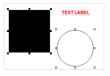 複数オブジェクトを選択するには、Shift キーを押しながらオブジェクトをクリックするか、選択したい全てのオブジェクトを囲むようにマウスをウィンドウ内でドラッグします。オブジェクトを複数選択する場合、最後に選択したオブジェクトだけが黒いハンドルとなり、他のオブジェクトのハンドルは白枠になります。