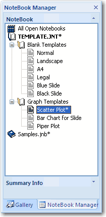 SigmaPlot では、サンプルのテンプレートノートブック (Template.jnt) が用意されており、これはテンプレートの初期のソースノートブックとして設定されています。