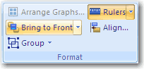 - 選択したオブジェクトを前面に移動するには、Graph Page タブの Format グループで、Bring to Front をクリックします。選択したオブジェクトが他の全てのオブジェクトの前に表示されます。
