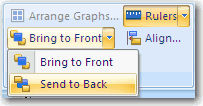 - 選択したオブジェクトを背面に移動するには、Graph Page タブの Format グループにある Bring to Front ドロップダウンリストから、Send to Back をクリックします。選択したオブジェクトが他の全てのオブジェクトの後ろに表示されます。