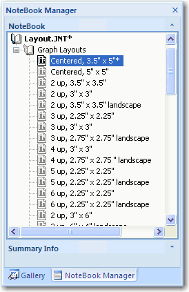 レイアウトは、テンプレートと同様、拡張子 .jnt を付けてノートブックに保存されます。SigmaPlot には、サンプルのレイアウトノートブック ”layout.jnt” が用意されており、これがレイアウトソースのデフォルトのノートブックに設定されています。