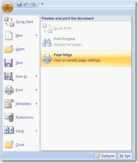 - グラフページが表示されていることを確認してください。Main ボタンをクリックして、Print を選択し、Page Setup をクリックします。