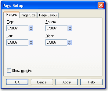 オプションを使用して、それぞれのページ余白の幅と高さを指定します。入力ボックスでは、使用可能な任意の計量単位で値を入力できます。入力した値は、