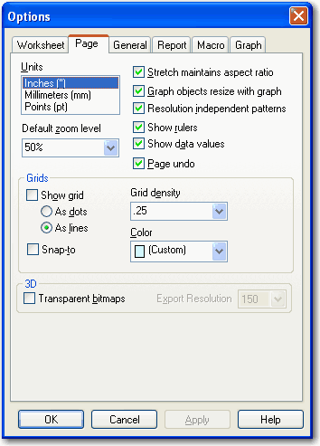 Page Options ダイアログボックスを使用すれば、グラフページで使用する計量単位を変更することができます。