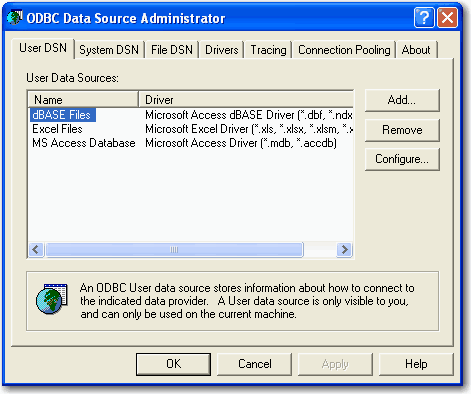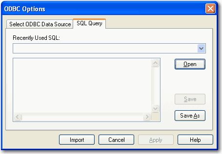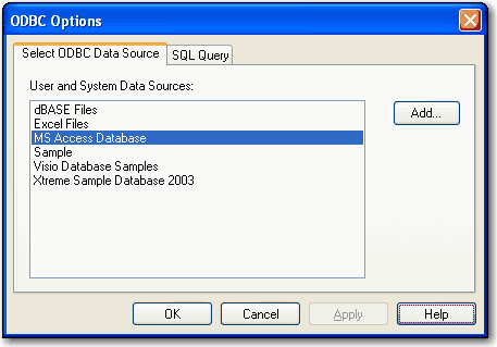 ODBC に準拠したデータベースを SigmaPlot にインポートすることができます。データベースをインポートするには、まず ODBC DataSource を定義します。データソースを定義すると、テーブルのインポートおよび SQL (structured query language) を使用したインポートが可能になります。
