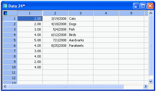 図 69: 列1 に数字、列2 に日付、列3 にテキストを表示した例。