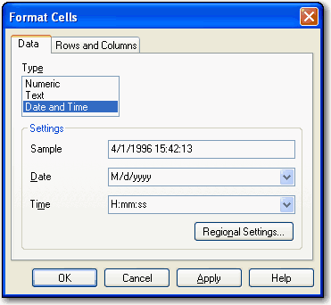 - Type リストで Date and Time をクリックします。
