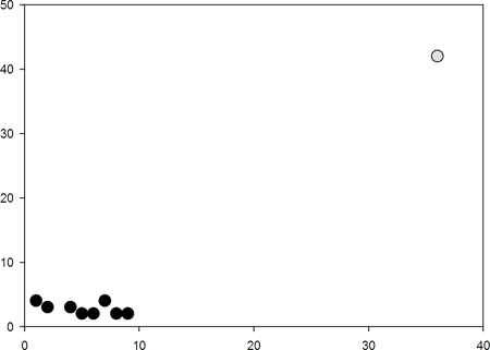 外れ値を削除するには、データを切り取ってワークシートの別の部分に移動する方法もあります。この方法は外れ値は無視したいけれどもそのデータはプロットしたい場合に便利です。外れ値を移動したらそのデータを別にプロットすることで、外れ値を表示を維持させることができます。