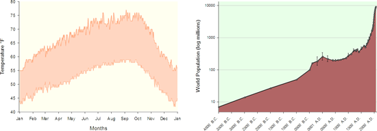 領域プロット (Area Plot) を使用すれば、曲線の下の領域に色をつけて曲線を見やすくすることができます。色の塗潰しには、上下左右の向きを選択できます。曲線が閉じた多角形の場合は、その内側を塗りつぶすことができます。1つのページに複数の曲線(プロット)を描けるので、領域プロットを重ねることもできます。詳しくは、領域プロットを作成するをご覧ください。