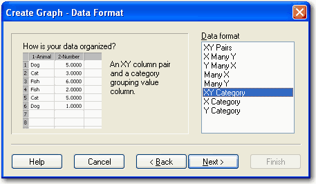 - Graph Wizard の Data Format パネルで、次のカテゴリーデータ形式のいずれかを選択します。