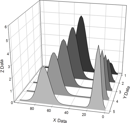 3D ウォーターフォールプロットで利用できるデータ形式は、Many Z と XY Many Z のみとなります。