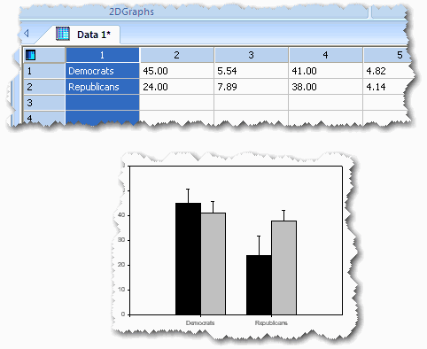 - Selected Columns でプロットデータを割り当てるワークシート列を選択するために、ワークシート上で列をクリックします。使用したいデータタイプのカテゴリー軸としてカテゴリー列をプロットし、対応するデータタイプとして別の列を選択します。