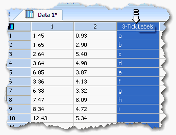 ワークシートの列を使用して目盛りラベルをカスタマイズするには: