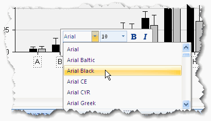 - 目盛りラベルに使用するフォントを変更するには、まず目盛りラベルをクリックします。表示されるポップアップの Font ドロップダウンリストからフォントを選択します。